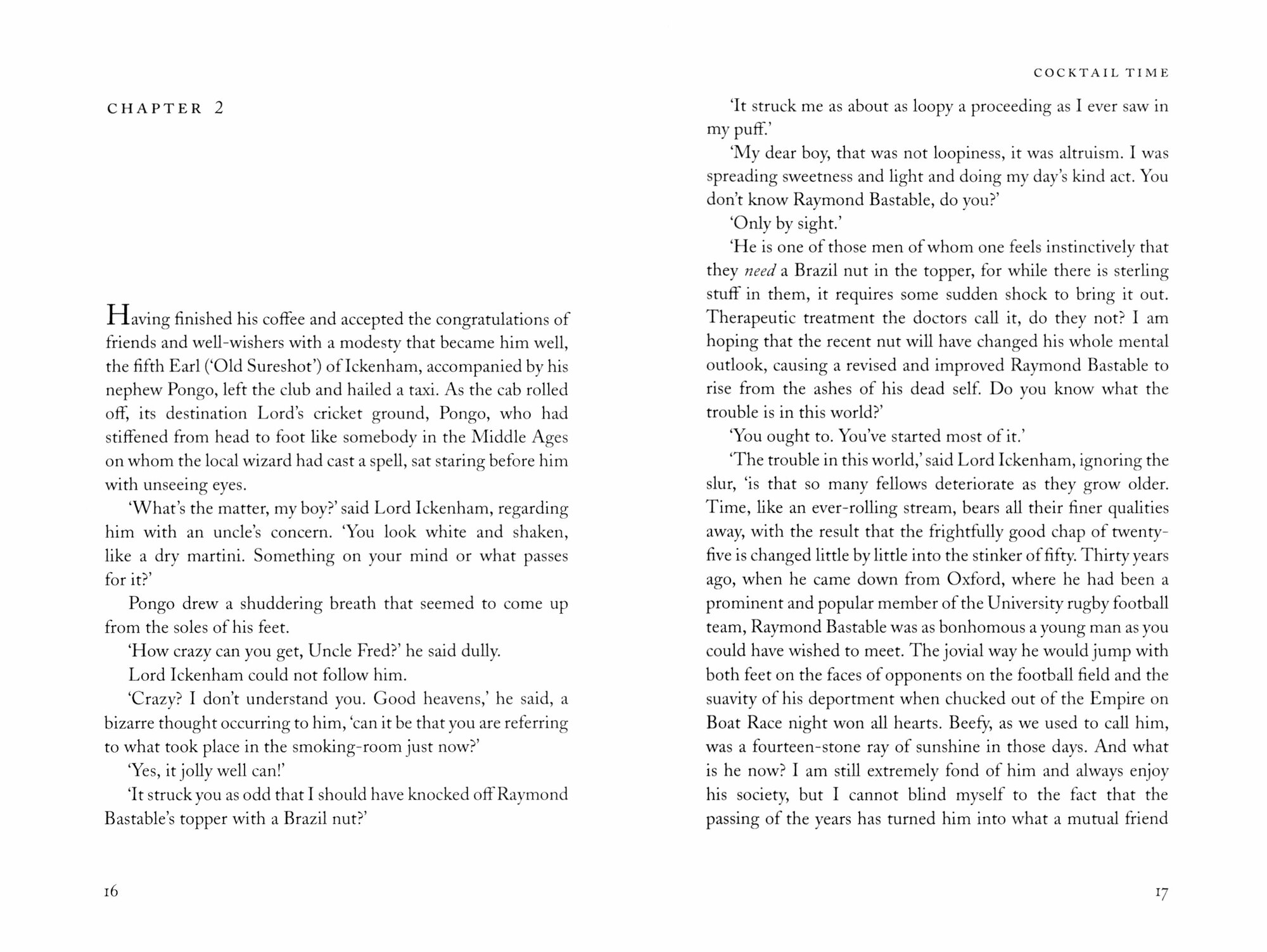 Frederick, Earl of Ickenham, is not the man to run away from other people's romantic problems, not even when faced with the tangled relationships of his godson, Johnny, Johnny's girlfriend, Belinda, butler Albert Peasemarch and Peasemarch's beloved, Phoebe, who happens to be the sister of his employer, bad-tempered Sir Raymond 'Beefy' Bastable. Sir Raymond is himself in pursuit of Barbara Crowe. Everything turns on the fate of the script for a film called Cocktail-Time by Bastable's nephew, Cosmo Wisdom - but just to stir the mixture a little further, Wodehouse throws in American con-artist Oily Carlisle. Now read on...