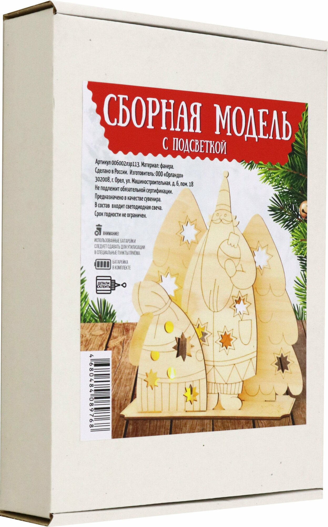 Интерьерное украшение с подсветкой к Новому году и Рождеству Христову. Композиция состоит из нескольких деталей, которые крепятся на подставке, и светодиодной свечи. Сборную модель можно раскрасить по вашему желанию. Подойдет для творческих занятий, для семейного творчества и досуга. Развивает пространственное мышление, мелкую моторику, усидчивость, терпение. Хороший подарок к любимым зимним праздникам!