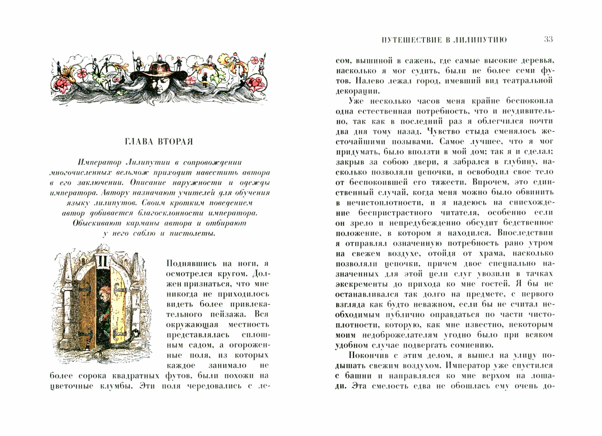 Эта книга принадлежит к числу любимейших книг читающего человечества. Причина ее популярности прежде всего в богатой фантазии автора, в мастерски задуманной фабуле. Этим, конечно, объясняется ее небывалый успех у маленьких читателей всех народов. Но если бы значение книги сводилось только к ее «занимательности», она не нашла бы себе места среди самых глубоких и поучительных созданий человеческого гения. Эта повесть о лилипутах и великанах, это внешнее оформление словно создано для того, чтобы вместить величайшее содержание.
