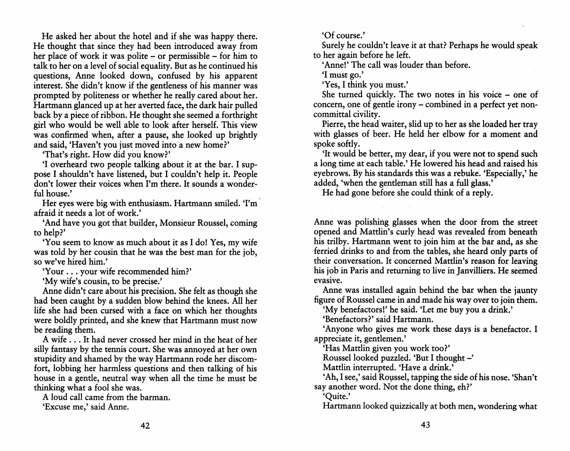 Mid-1930s, Northern France. A mysterious young girl named Anne Louvet arrives at the seedy Hotel du Lion d’Or in the small French town of Janvilliers. She is seeking a job and a new life, far removed from the injustices of her past. At the hotel, Anne meets the cultured, rich and married Hartmann and begins anaffair with the married Great War veteran, revealing her secrets, fears and hopes to him. From award-winning author Sebastian Faulks, Girl at The Lion d’Or is a powerful story of love and conscience, will and desire.