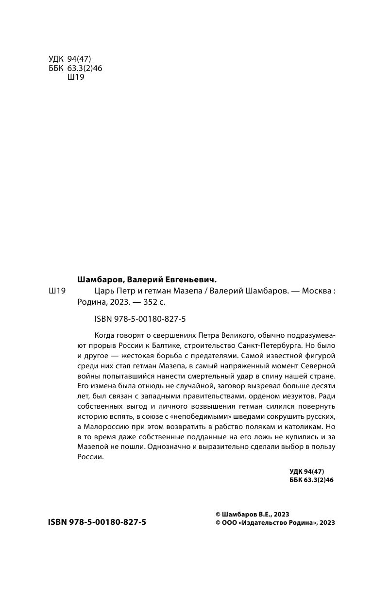 Царь Петр и гетман Мазепа (Шамбаров Валерий Евгеньевич); Родина Издательство ООО, 2022