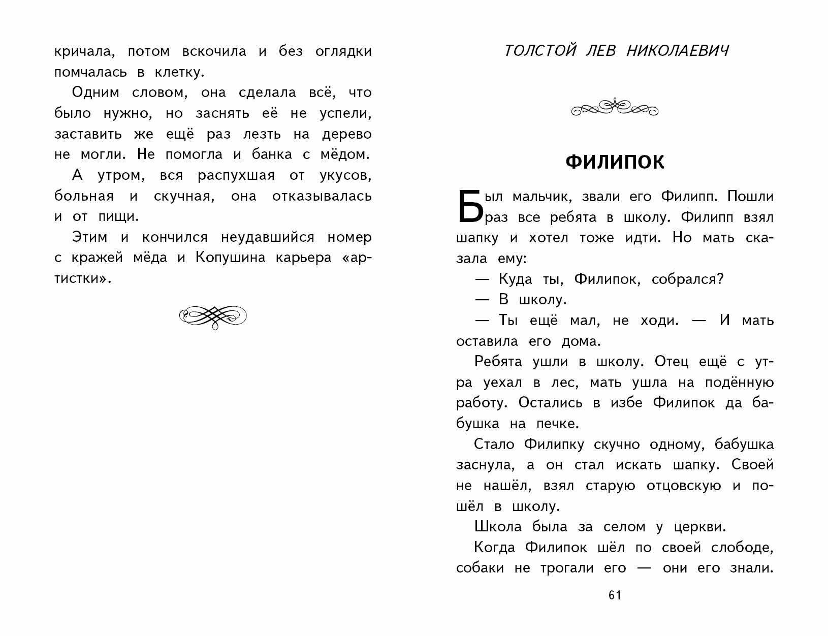 Эта небольшая книга удобна для самостоятельного чтения. Шрифт достаточно крупный, цена прям очень приятная. И хотя для школьной программы одной такой книги будет явно мало, но подборка произведений таких именитых авторов, как Драгунский, Пришвин, Бианки, хорошая и имеет правильную рекомендацию по возрасту маленького читателя. Мой ребенок прочитал такую книгу в 5 лет.