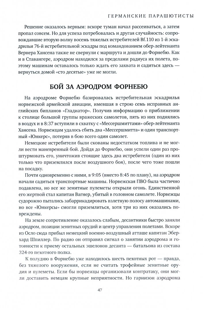 Автор сего труда в предисловии намекает, что эта книга - первая и единственная в своем роде, до него ещё никто собрать и обобщить материал по действиям немецких Fallschirmjager не додумался. Сама книга - пересказ разного рода материала, опубликованного на Западе в разные годы. Разобраны десантные операции в Голландии и на Балканах, о действиях на сухопутных фронтах ни слова, равно как и о структуре. Оформление отвратительное - огромное количество бестолковых и непонятных карт и планов, передранных просто ради "объема" со старых западных изданий без каких-либо ключей и пояснений. Интересных фотографий мизер, подавляющее большинство фото тоже "ни о чем". В целом оформление на уровне публикаций в "Живом Журнале".