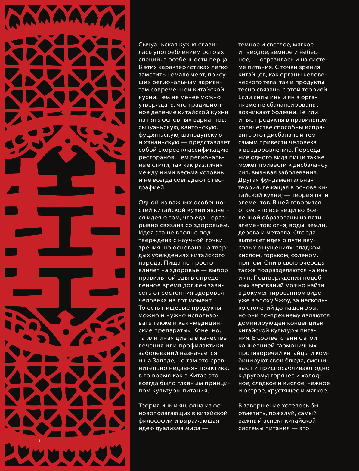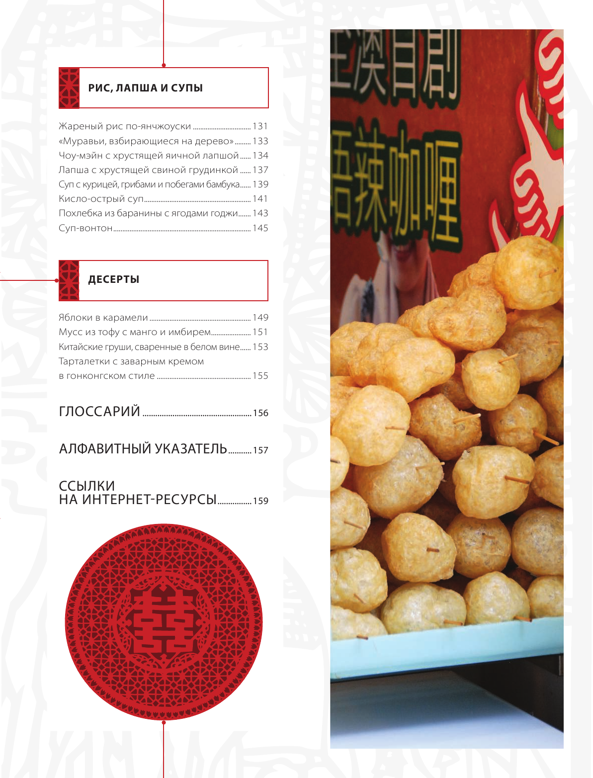 Отличная книга для тех, кому интересно окунуться в кулинарный мир китайской кухни или просто ближе познакомиться с их культурой. Подробно описано, какой посудой и почему пользуются китайцы для приготовления разных блюд, как правильно подготавливать продукты, и конечно же рецепты, которых в книге чуть больше 60. Утка по-сычуаньски, шишки из кальмаров, мраморные чайные яйца – звучит все очень экзотично, но изюминка книги в том, что несмотря на сложные названия, рецепты максимально простые и ингредиенты подобраны так, чтобы российский покупатель мог с легкостью найти их.