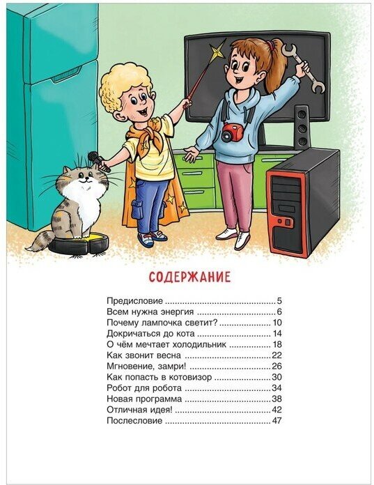 Ребенка с самого рождения окружает разная домашняя техника и устройства: холодильник и стиральная машина, телевизор и телефон, а еще электрические лампочки и многое другое. Сказочные герои этой книги расскажут, почему светится лампочка, что такое энергия, почему продукты в холодильнике долго остаются свежими. Ребенок узнает, что волны бывают не только на море, а телевизор можно устроить и на подоконнике.