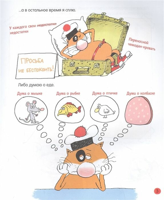 В этой книге кот Помпон вместе со своим закадычным другом Трюнделем поделится некоторыми советами и хитростями, которые будут полезны всем голодным котам (и даже детям). А еще коты предложат юным читателям порисовать, посочинять, пройти несколько лабиринтов и даже поиграть в свою любимую игру — «Обжорский бой»!