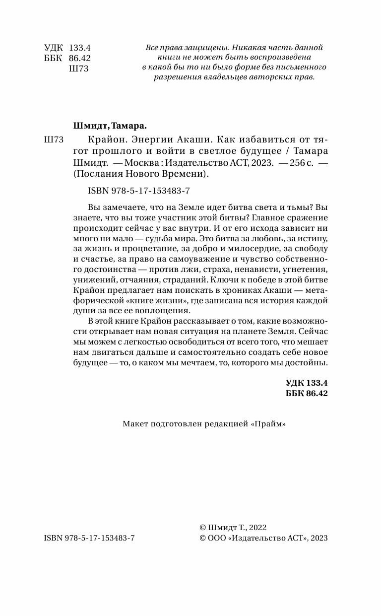 Крайон. Энергии Акаши. Как избавиться от тягот прошлого и войти в светлое будущее (Тамара Шмидт); Издательство АСТ, 2022