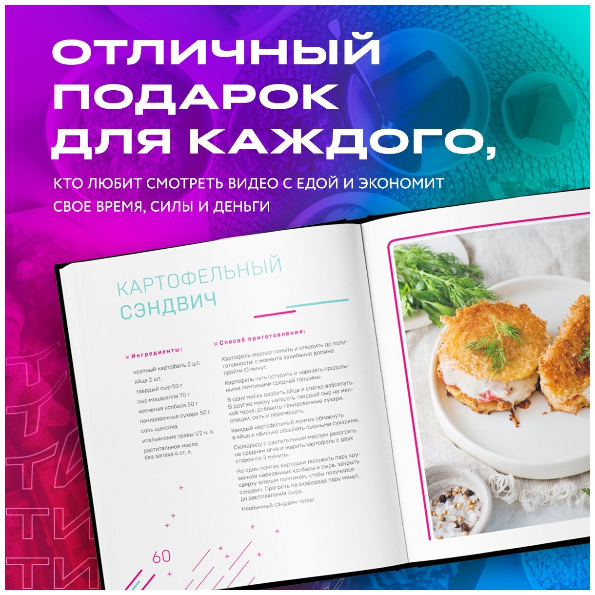 Знаете, этот случай, когда сохраняешь себе понравившиеся видео рецепты с мыслью «я это обязательно приготовлю» и потом конечно же забываешь. А теперь не забудешь, потому что все эти рецепты перед тобой в одном месте! Еще и в стилистике соц сети, очень ярко и необычно, как будто мини тик-ток листаешь.