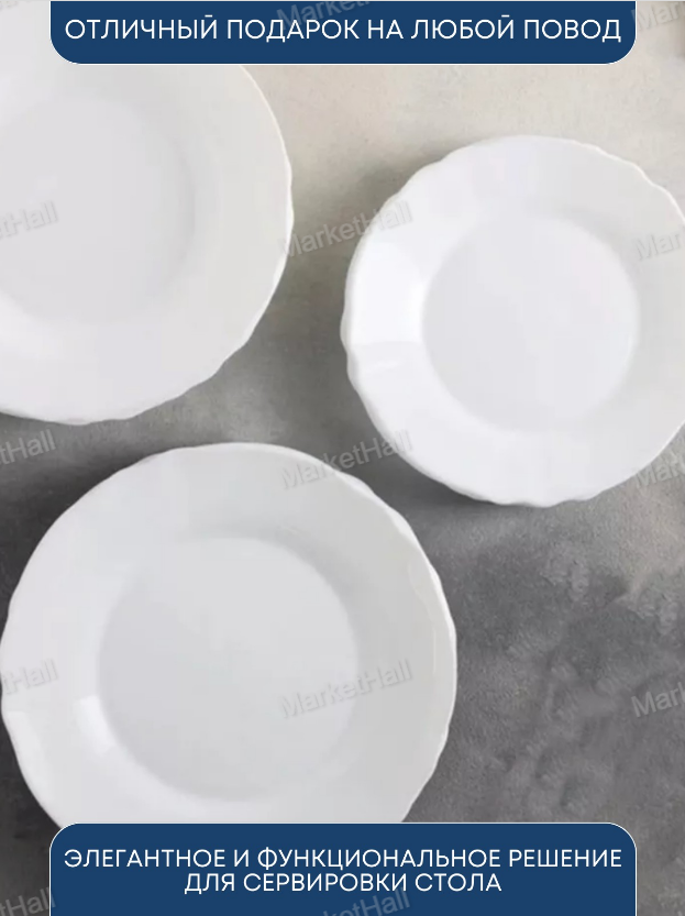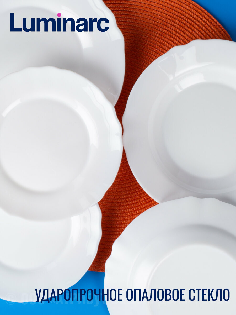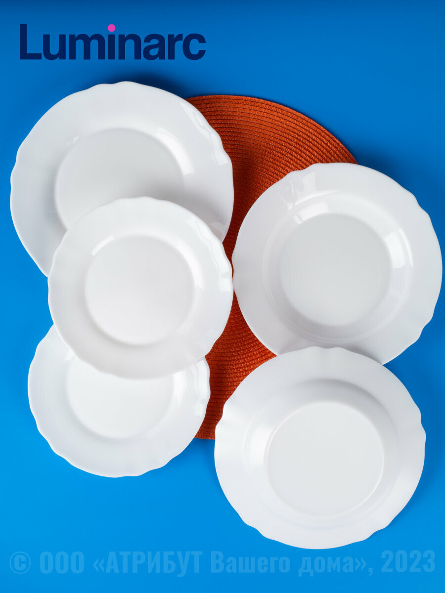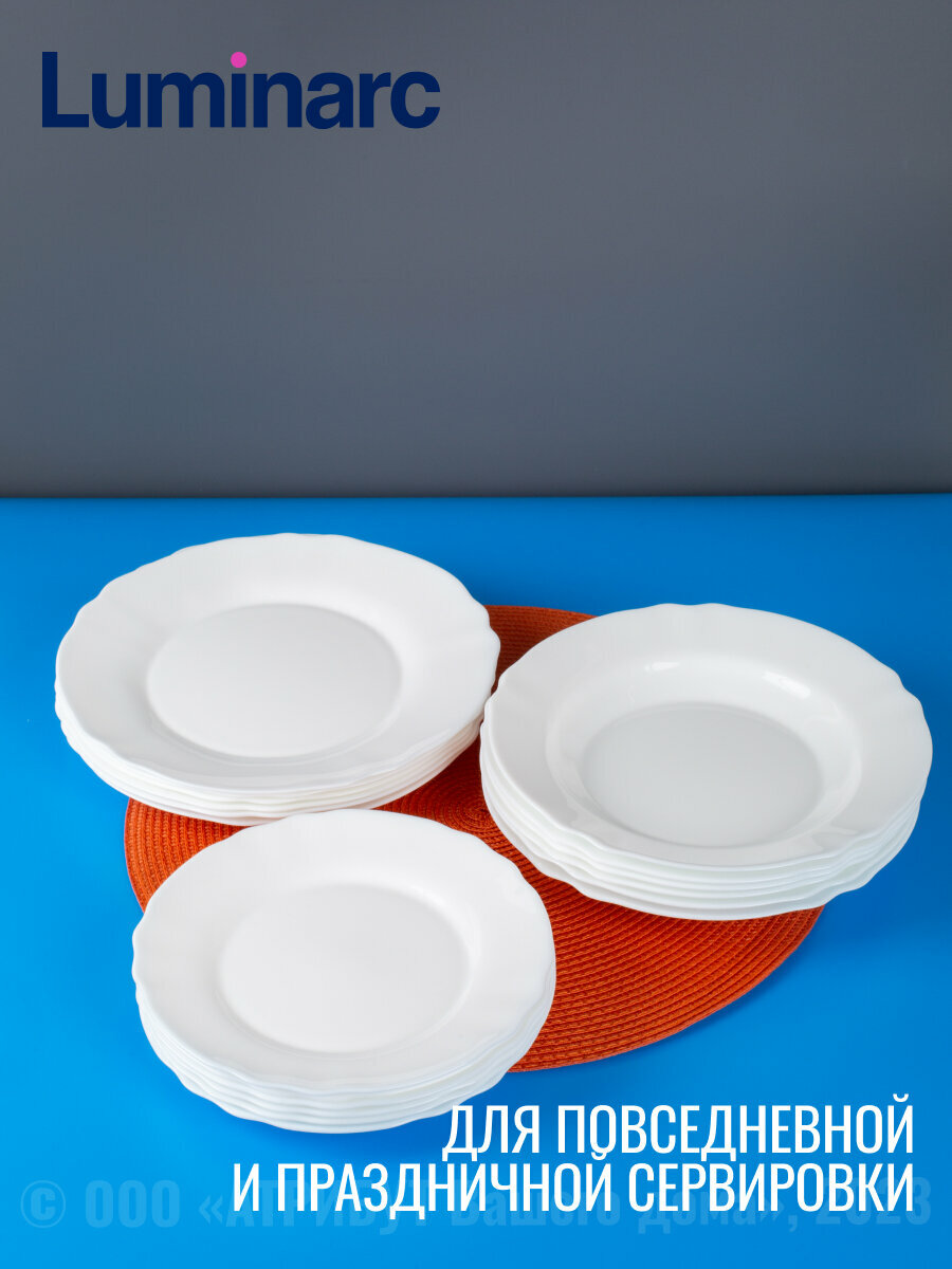 Столовый сервиз Louis XV 16 предметов бренда Luminarc на 4 персон изготовлен из цветного стекла. Набор столовой посуды будет отлично смотреться как на повседневном, так и на праздничном столе, в состав входят: Тарелка суповая 23 см - 4 шт, Тарелка обеденная 24 см - 4 шт, Тарелка десертная 19 см - 4 шт, Порционный салатник 12 см - 4 шт Многоразовый стильный сервиз подходит для ежедневного применения дома, на даче, а также в кафе и ресторанах. Во время отдыха на новогодние или рождественские праздники использование красивой посуды позволяет сервировать огромное количество самых разных кулинарных шедевров – от необычных супов до изысканных закусок и новомодных десертов. Во время свадебного торжества, использование таких наборов в сервировке, в отличие от белых вариантов, позволит подчеркнуть торжество момента, и полностью будет соответствовать антуражу праздника. Набор тарелок для сервировки стола на 4 персоны – это идеальный выбор для тех, кто ценит комфорт, качество и элегантность в быту. Сервиз Люминарк состоящий из 16 предметов сервиз столовый является полноценным комплектом для обеда, ужина или любого другого торжественного события. Сервиз столовый на 4 персоны включает в себя большое количество элементов, необходимых в процессе сервировки стола позволяющие разнообразить обеденное меню и создать настоящую атмосферу праздника или светского общения. Одним из главных преимуществ этого набора тарелок является его элегантный дизайн. Таким образом, набор тарелок для сервировки стола на 4 персоны является отличным выбором для тех, кто ищет не только функциональность, но и эстетическое удовольствие в повседневной жизни. Сервиз столовый, который включает в себя все необходимые элементы для обеда, ужина и праздника, обеспечит Вам и Вашим гостям комфорт и наслаждение общении за столом. Оригинальные интересные тарелки Louis XV могут служить для сервировки праздничного новогоднего стола, вкупе с цветными салфетками и яркими приборами, создавая атмосферу ожидания грядущего чуда. Качественный столовый сервиз в подарочной упаковке - это лучший полезный подарок для молодоженов.