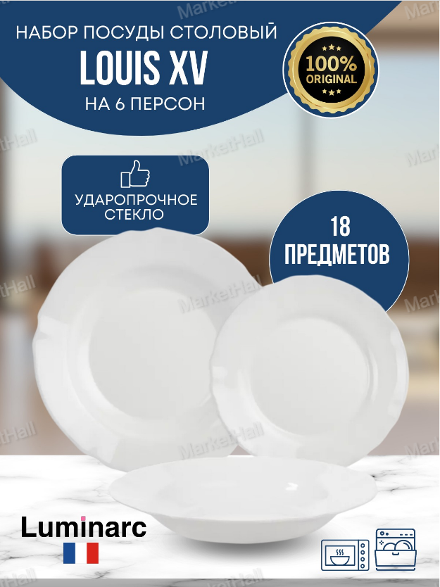 На сегодняшний день товар «Сервиз столовый стеклокерамика 18 предметов на 6 персон Luminarc Louis XV V2940» можно купить с кешбеком в 2 магазинах: Яндекс.Маркет, ГЛОБУС