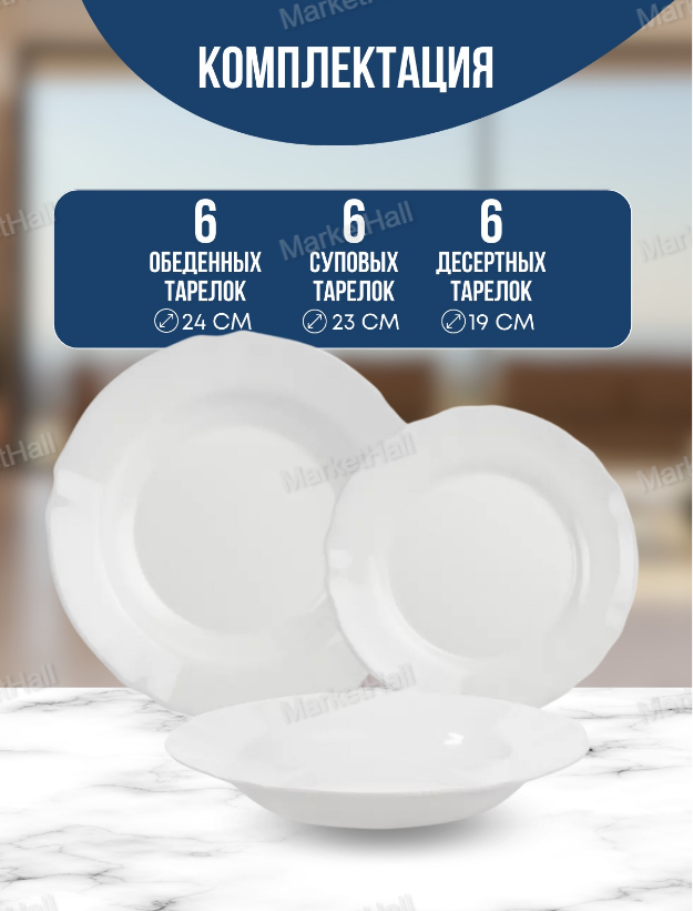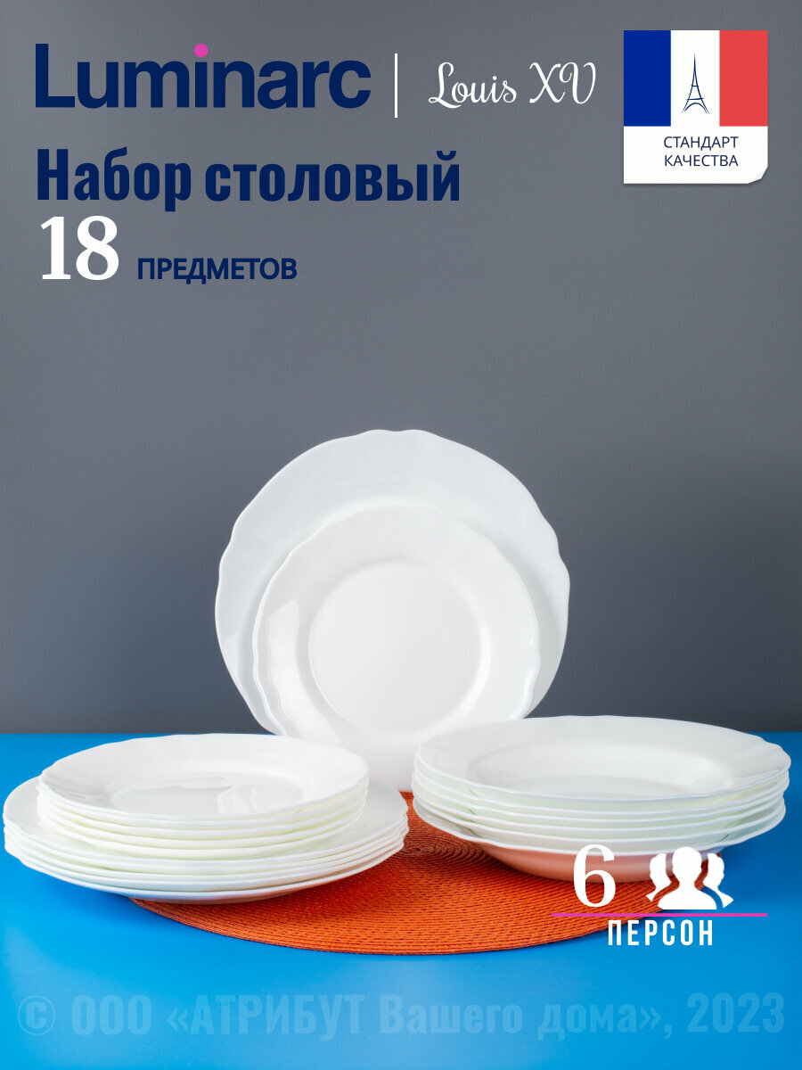 Сервиз столовый стеклокерамика 18 предметов на 6 персон Luminarc Louis XV V2940