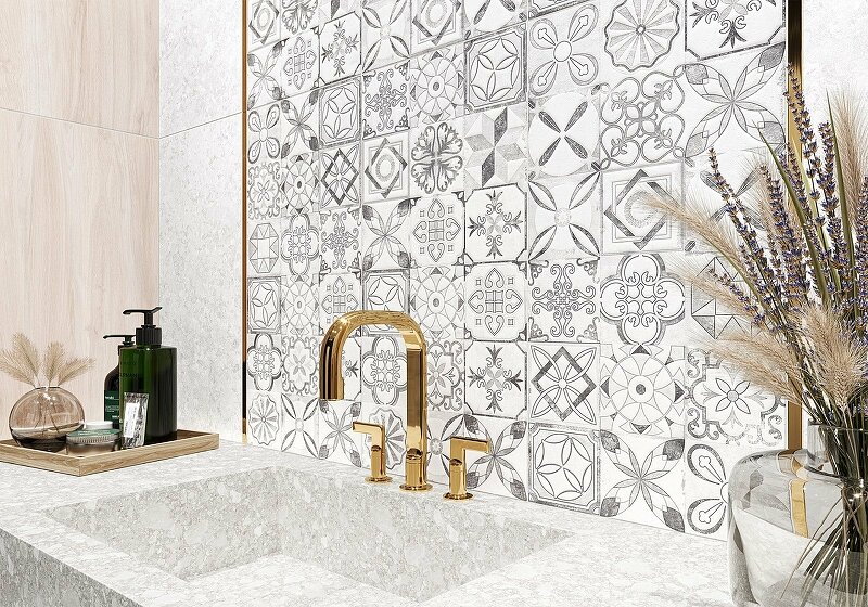 Керамическая плитка NewTrend с рисунком в стиле пэчворк.