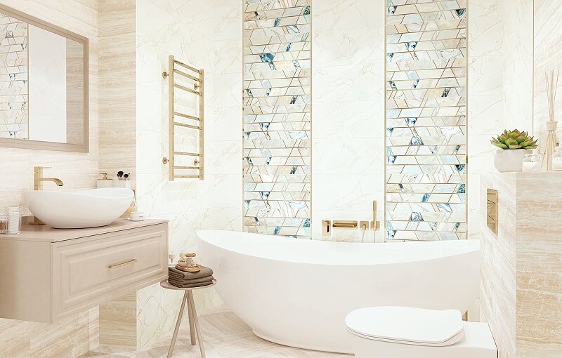 Плитка применяется для отделки ванных комнат, кухонь, прихожих и гостиных и других частных и общественных помещений. Прекрасно впишется в современный, классический стиль отделки помещения.
