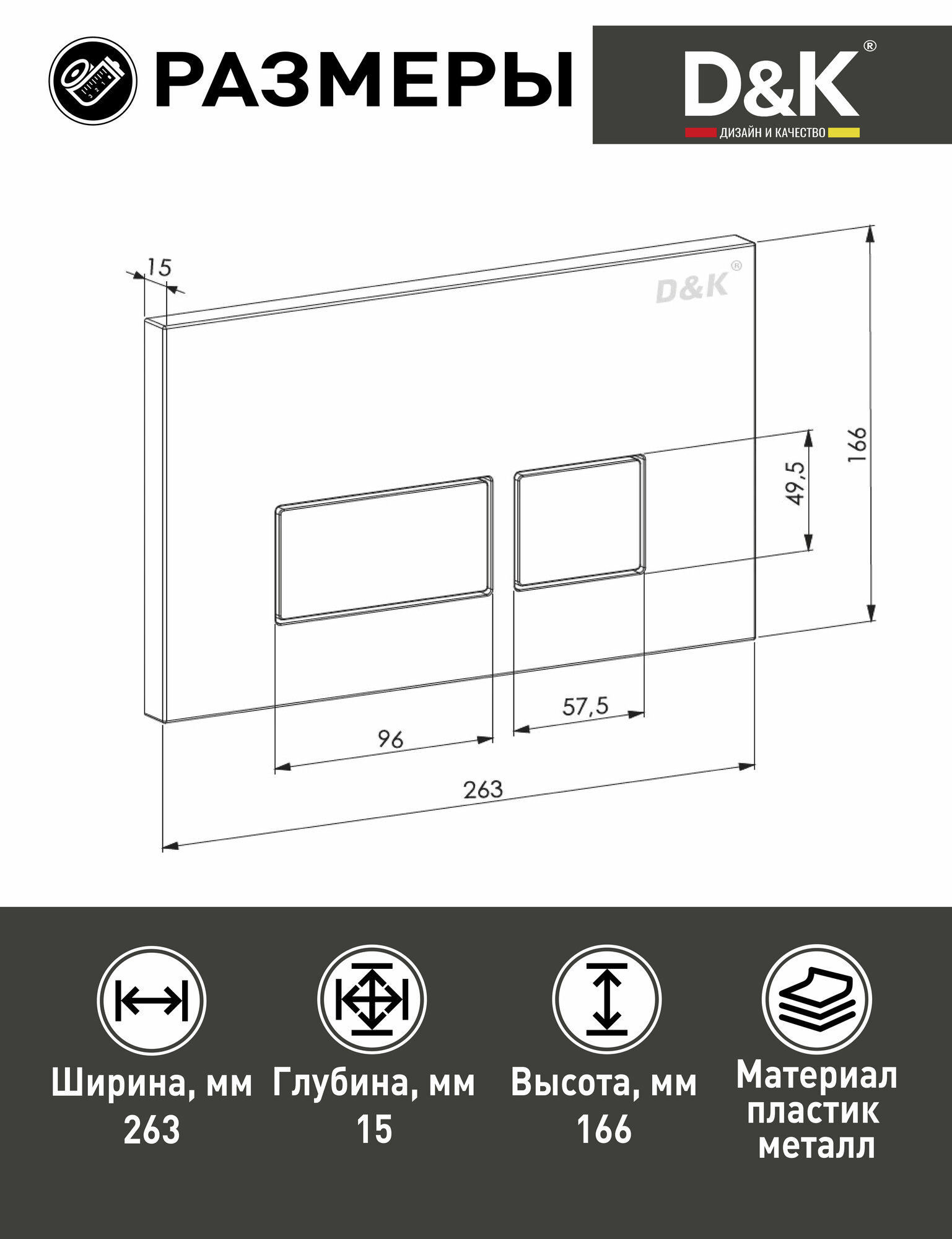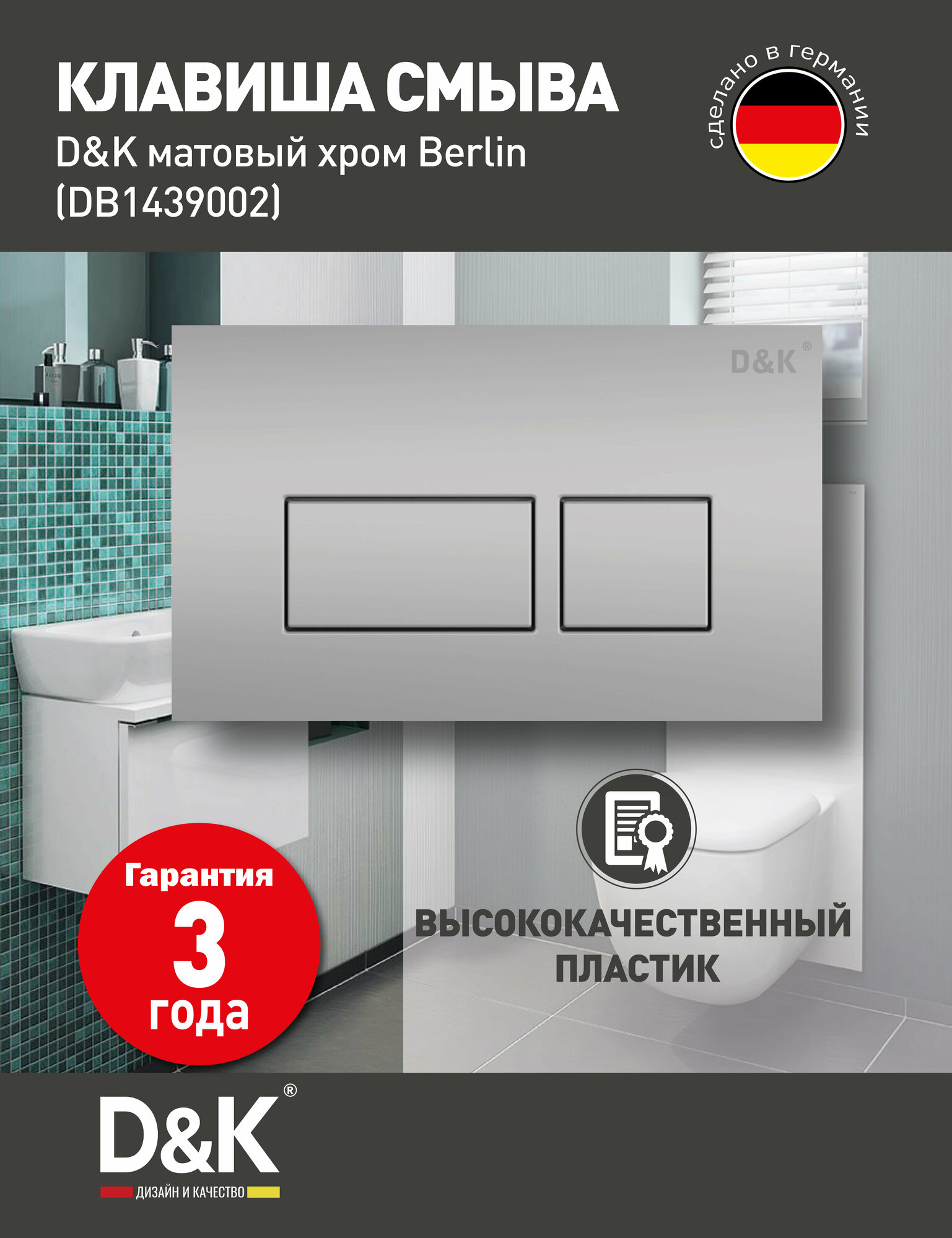 Клавиша смыва D&K; для инсталляции скрытого монтажа Berlin DB1439002, матовый хром. Инсталляция D&K; для подвесного унитаза позволяет скрыть все технические части, оставив видимой только кнопку слива и саму подвесную чашу. Кнопки смыва D&K; с несколькими режимами смыва: половина 3 литра, полный бак 6 литров. Данная возможность предусматривает экономию воды. Эстетичность пространства. Подвесная конструкция позволяет спрятать за декоративной панелью все узлы и коммуникации, идущие к бачку унитаза, а также скрыть канализационные трубы. Количество кнопок слива 2шт: объем смыва, литр 3/6.Клавиша смыва подходит только к инсталляции скрытого монтажа D&K; DI8055119