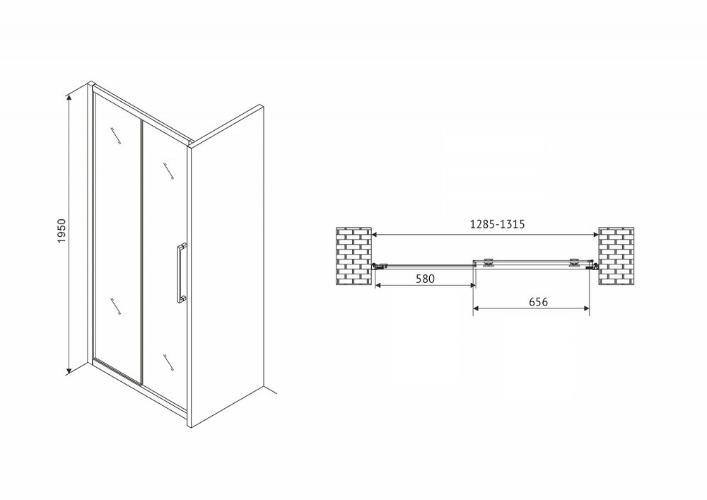 Душевая дверь Abber Schwarzer Diamant 195х130 AG30130H содержит стильные фурнитурные аксессуары, практичная прямоугольная форма позволяет эффективно организовать пространство в помещении.
