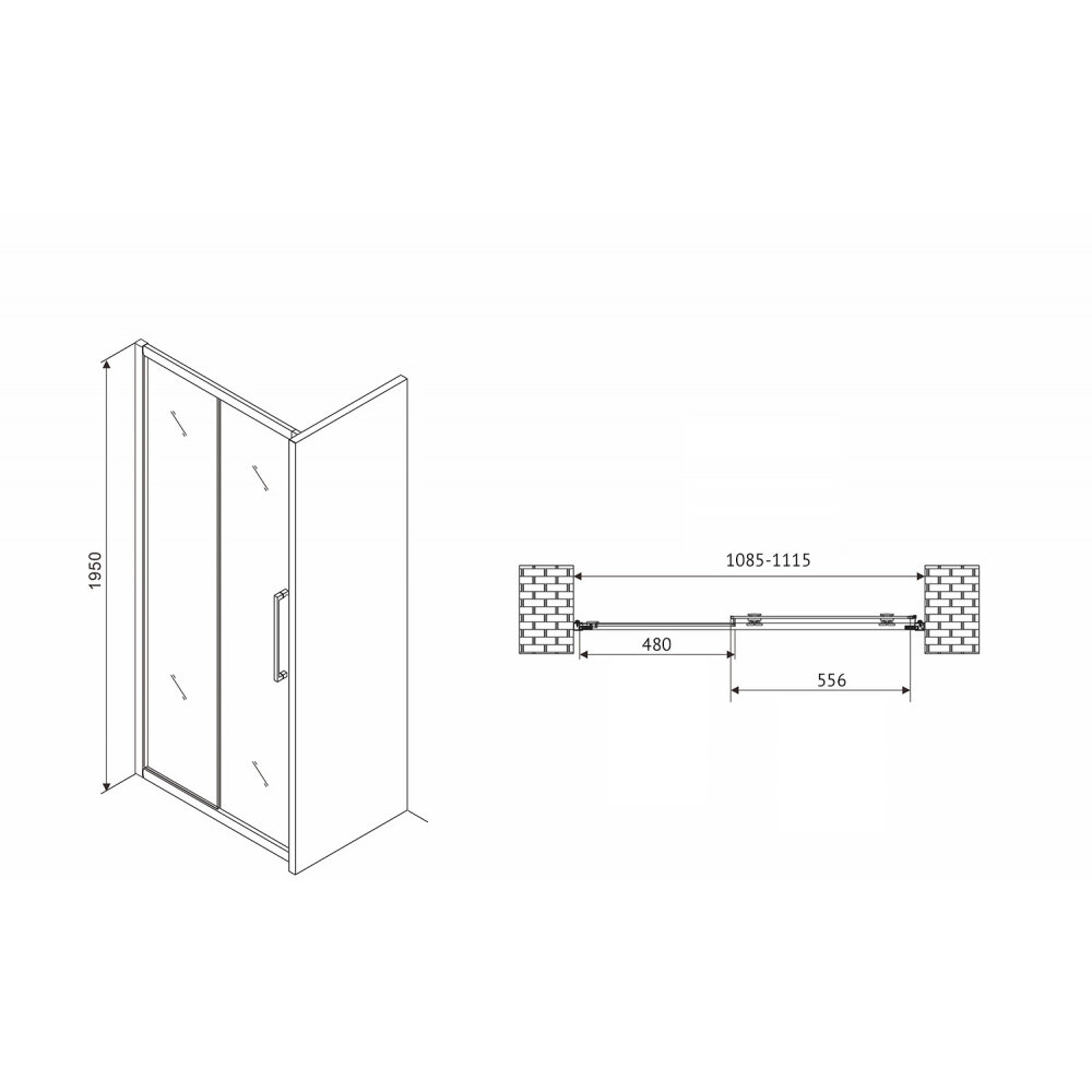 Душевая дверь Abber Schwarzer Diamant 110 AG30110H профиль Хром стекло прозрачное