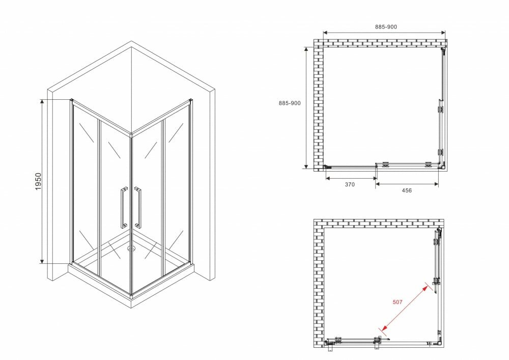 - Размеры (ШхВхД): 900х1950х900 мм.