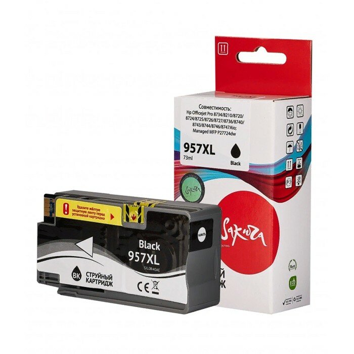 Струйный картридж Sakura L0R40AE для HP Officejet Pro 8734/8210/8720/8724/8725/8726/8727/8736/8740/8743/8744/8746/8747Aio;Managed MFP P27724dw черный пигментный тип 73мл 3000 к. SIL0R40AE