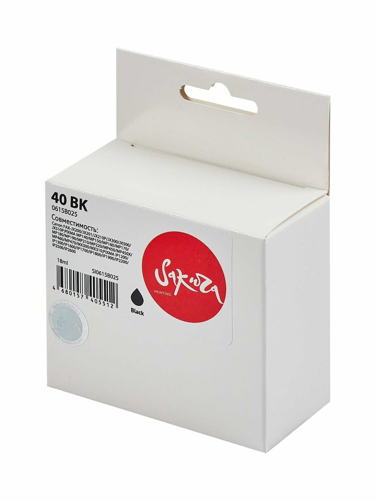 Струйный картридж Sakura 0615B025 для Canon FAX-JX200/JX201/JX210P/JX300/JX500/JX510P;PIXMA MP140/MP150/MP160/MP170/MP180/MP190/MP210/MP220/MP450/MP450X/MP460/MP470/MX300/MX310;PIXMA IP1200/IP1300/IP1 (SI0615B025)