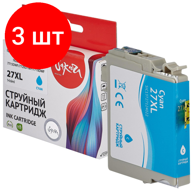 Сервис сравнения цен СкидкаГИД предлагает сравнить цены на товар «Струйный картридж Sakura C13T27124022 для Epson WorkForce WF-7110DTW/7610DWF/3640DTWF/7620DTWF/7210DTW/7715DWF/7720DTWF/7710DWF голубой водорастворимый тип 146мл 1100 к. SIC13T27124022»