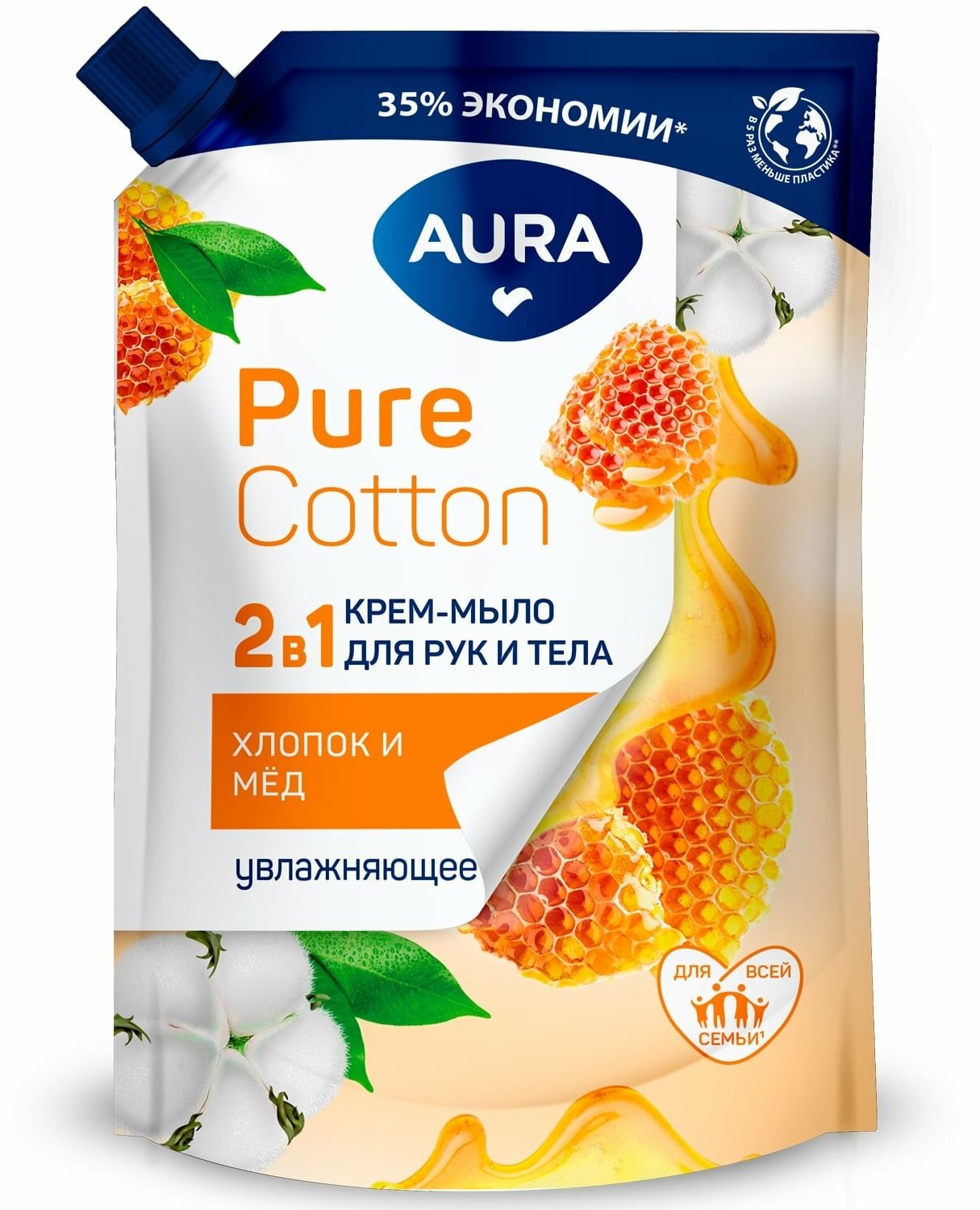 крем-мыло AURA Pure Cotton 2в1 Хлопок и мёд дой-пак 450мл (4752171015340)