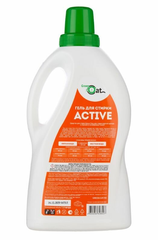 Гель для стирки Green Cat Active отлично подходит для стирки курток, спортивной одежды из мембраны, пуховиков и кроссовок. Жидкое средство для стирки глубоко проникает в волокна тканей, отстирывая даже сложные пятна при низких температурах воды. Отлично выполаскивается, не оставляя разводов на одежде. Средство для стирки Green Cat Active сохраняет первоначальный вид, яркость, прочность и функциональность спортивной одежды. Подходит для машинной и ручной стирки. Средство для стирки может использоваться в домах с септиками и автономными канализациями (при достаточном разбавлении средства не более 100 мл на 10 литров воды).