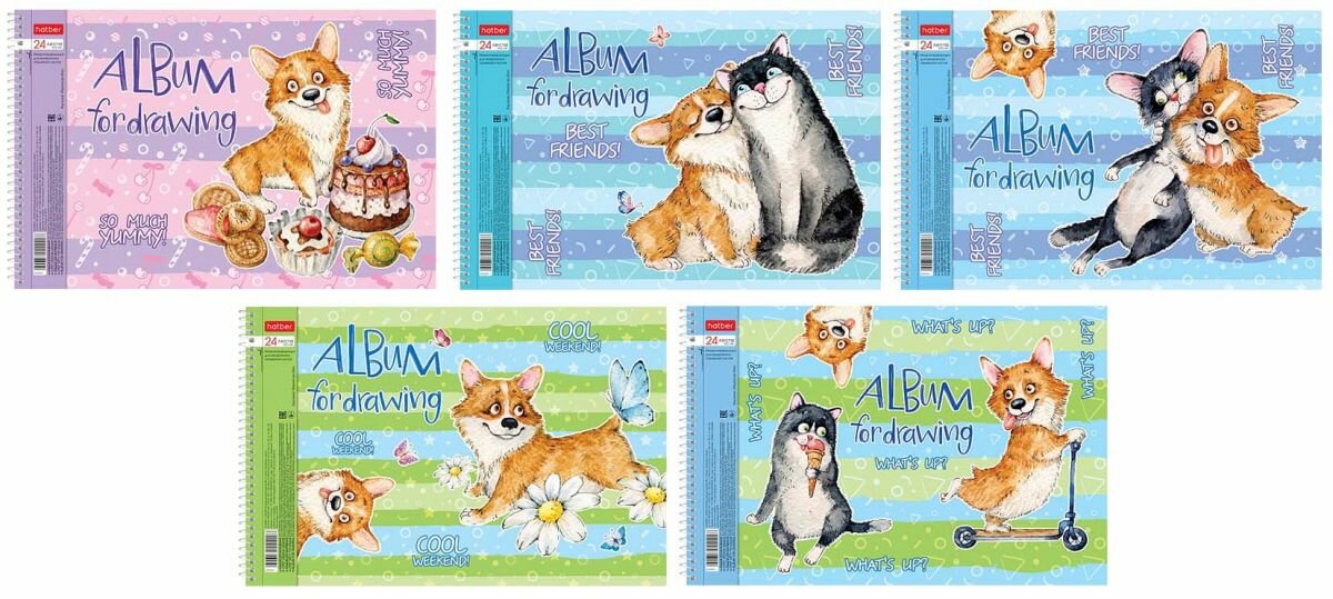 альбом для рисования Корги 24л А4 5 дизайнов Hatber (113075)