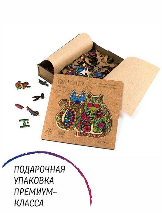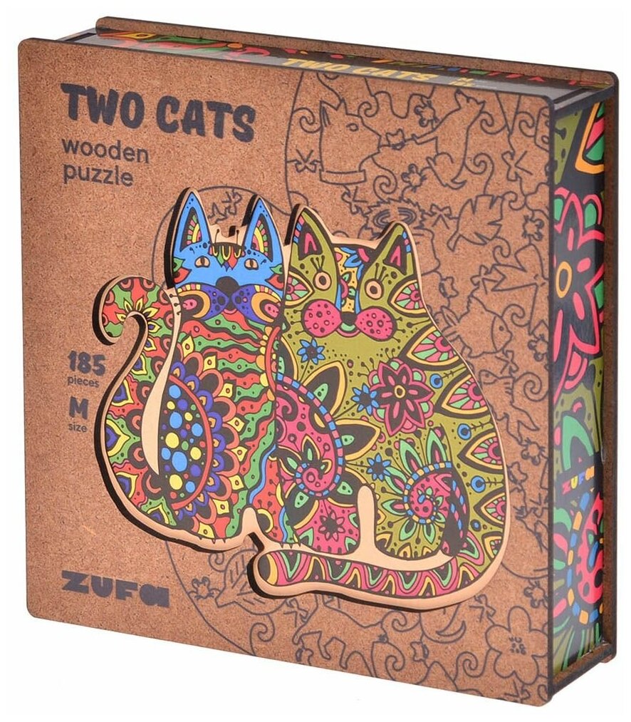 Деревянный пазл с двухслойной крышкой: Два кота (Размер М) Zufa (Z120-2)