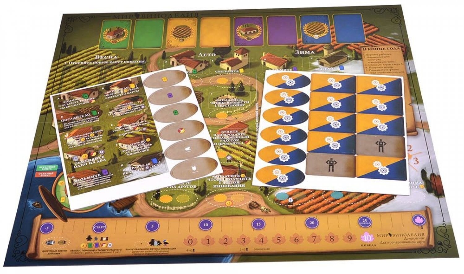 Вкус виноградаОсновные правила игры меняются незначительно – вы всё также будете заставлять своих рабочих непосредственно работать. Вам станут доступны сезонные рабочие (которые трудятся только в определённый период года, но их можно обучить и оставить работать в любое время). Также действия теперь поделены на две области, и появятся жетоны инноваций, которые выходят в начале каждого хода (весной) и улучшают результат ваших действий. В общем, и без того глубокий игровой процесс становится ещё более детальным и разнообразным. А от дополнения именно это и требуется!