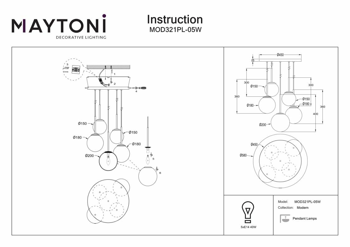 Подвесной светильник Maytoni BASIC FORM MOD321PL-05W