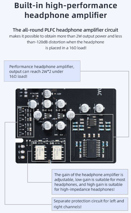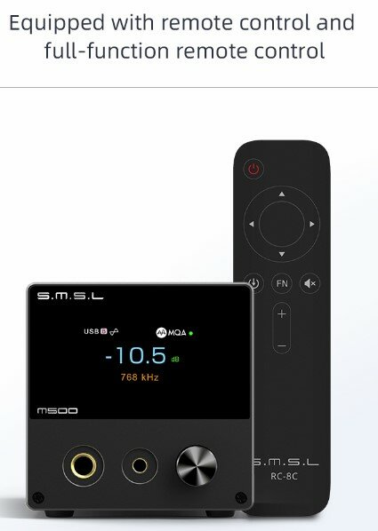 ЦАП/усилитель для наушников высокого класса. Наличие USB, оптического и коаксиального входов. ЦАП на микросхеме ES9038PRO. Балансный и небалансный выходы на усилитель и на наушники. Поддержка 32 бит / 768 кГц, DSD512, MQA/MQA-CD. Переключаемые цифровые фильтры. Bluetooth с поддержкой aptX HD, LDAC и AAC. Сертификация Hi-Res Audio. Дистанционное управление. Габариты (ШхВхГ): 85 x 88 x 197 мм. Вес 0,9 кг.