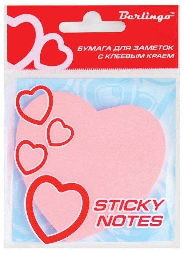 Блок самоклеящийся фигурный Berlingo "Сердце" 70*70 мм 50 л малиновый неон (LSz_76033)
