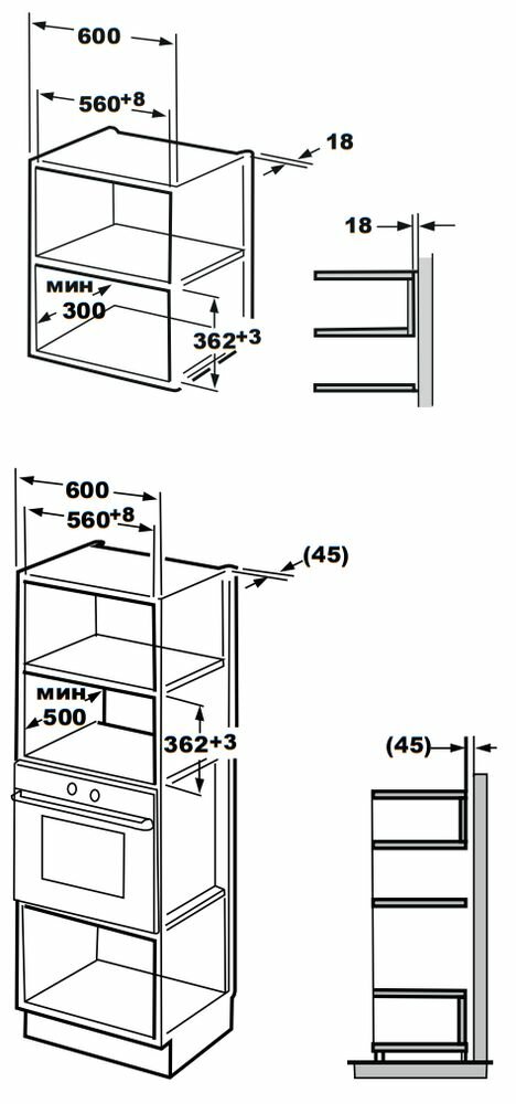 | Ширина шкафа для встраивания | 60 см |
