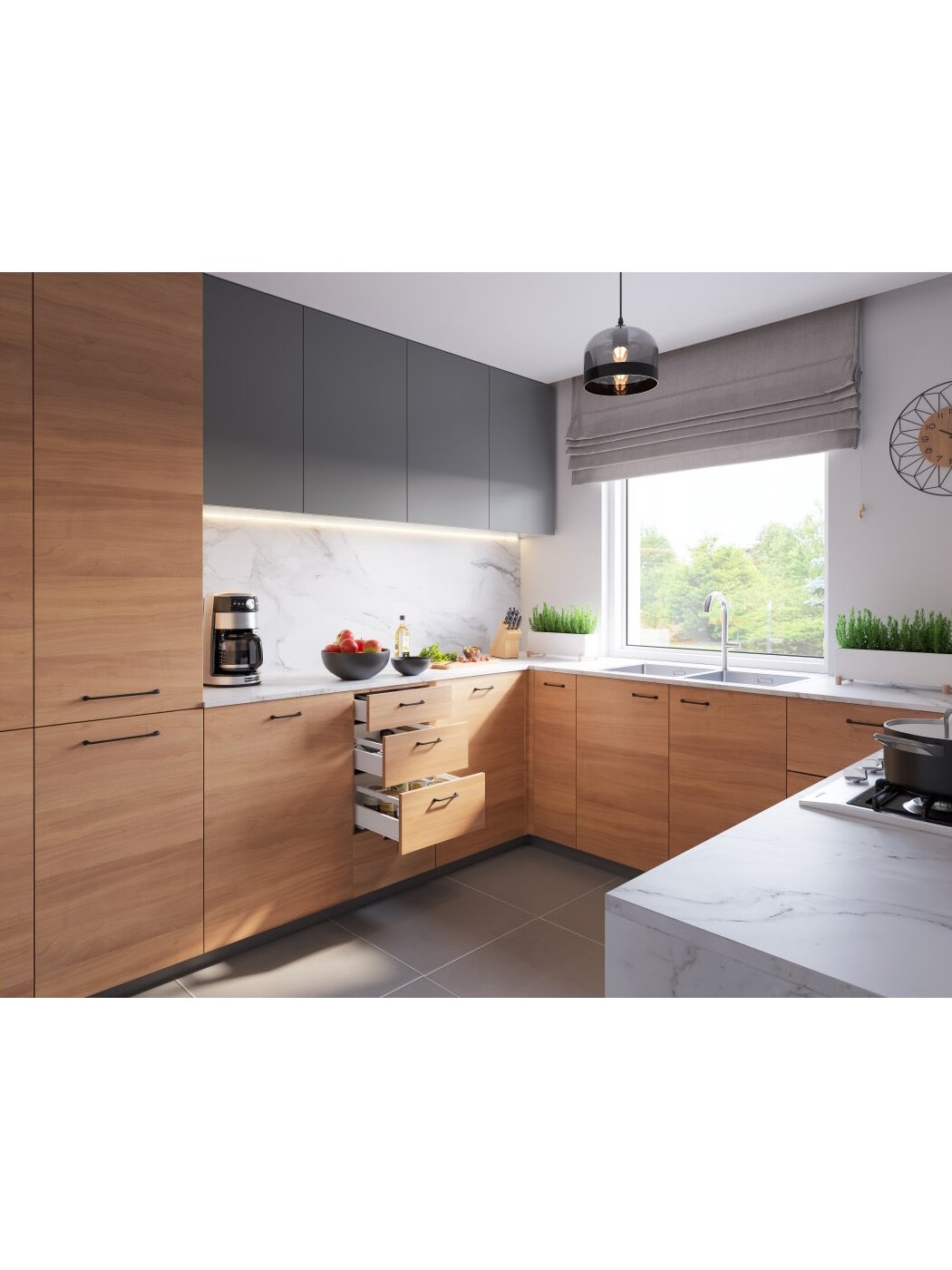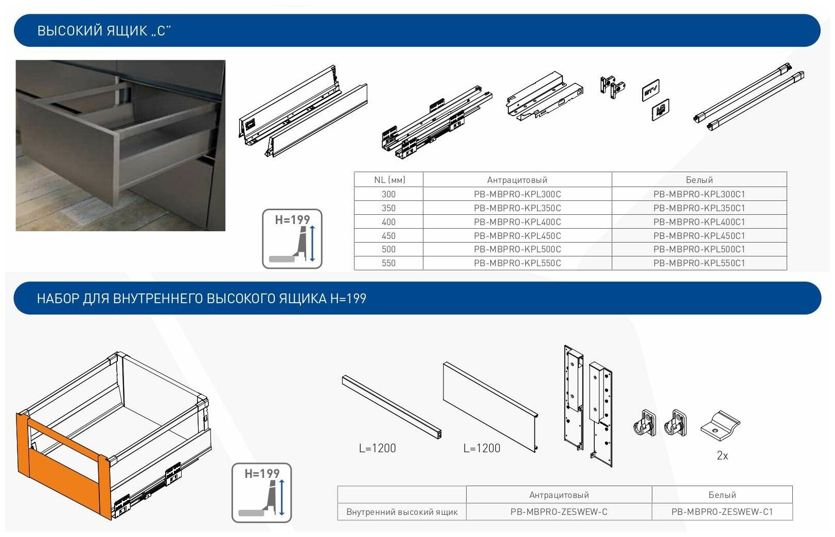 При проектировании мебельного изделия необходимо учесть техническое примечание от производителя; для правильной работы направляющей рекомендованная ширина ящика не должна превышать номинальной длины направляющей. Для данной модели номинальная длина направляющих = 500 мм.