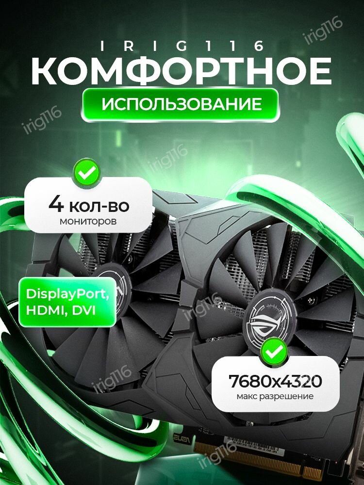 Купил это чудо для игр в октябре месяце 2018 на смену своей старой gegabite gtx 1050, так как от инвидео и справлялась с играми но только на средних или даже на высоких настройках, ультра уже не вытягивала. Выбор упал именно на эту видеокарту от asus, в первую очередь из-за приемлемой стоимости в отличии от конкурента зеленых; во вторых из-за хороших показателей, отмечу может и нвидиа по тестам и в переди, но данная карта с современными играми справляется, на ультра настройках все идет норм; и в третьих брал с учетом того, что видеокарта как раз подходит к моему монитору в 144 герц с функцией freesync.
