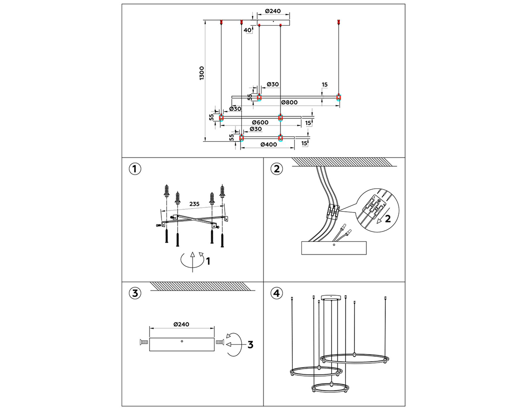 | Номенклатура | FL5533/3+9 WH белый 90W 3000K/4200K/6400K D800/600/400*1300 (без ПДУ) |