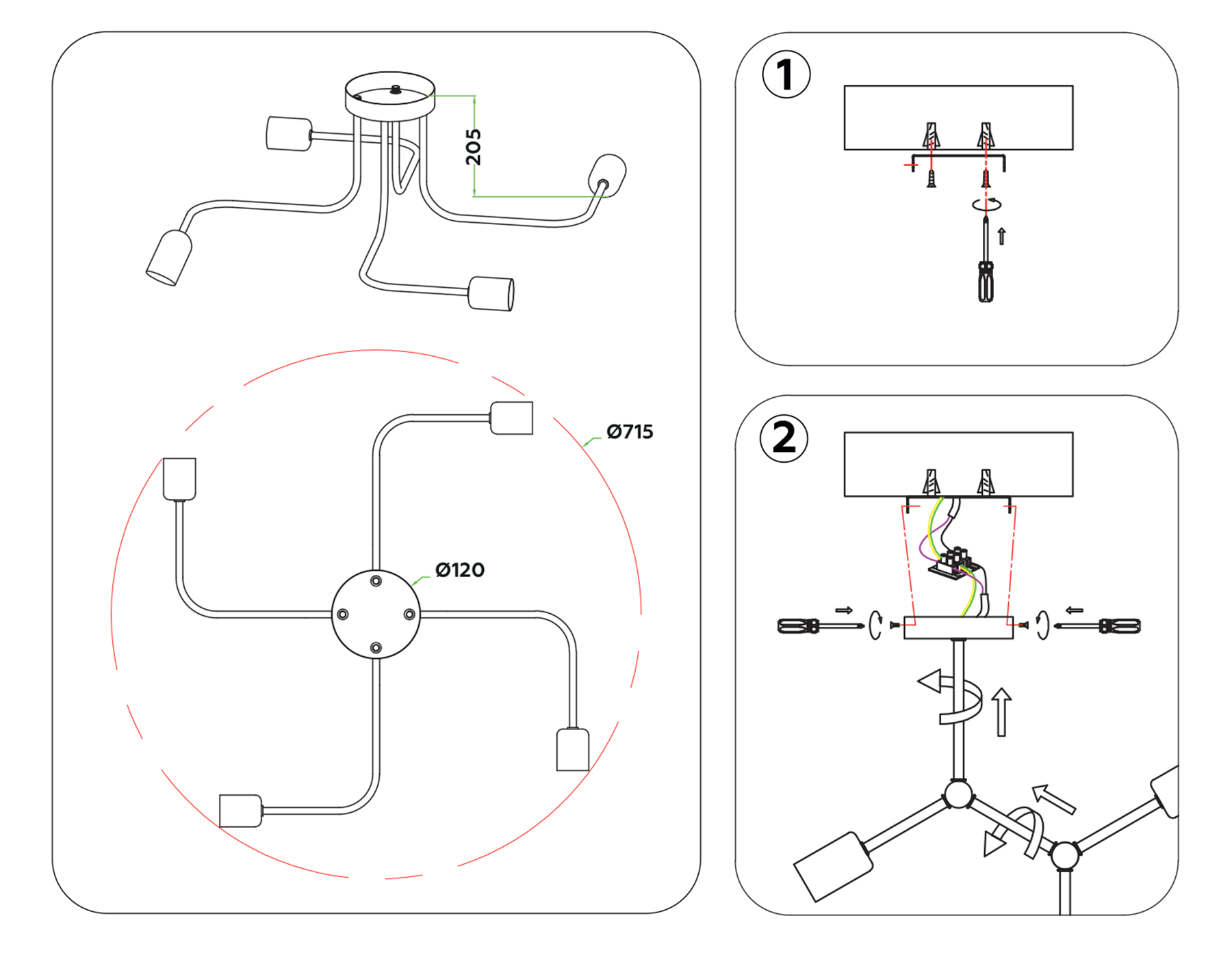 | Место установки | На потолок |