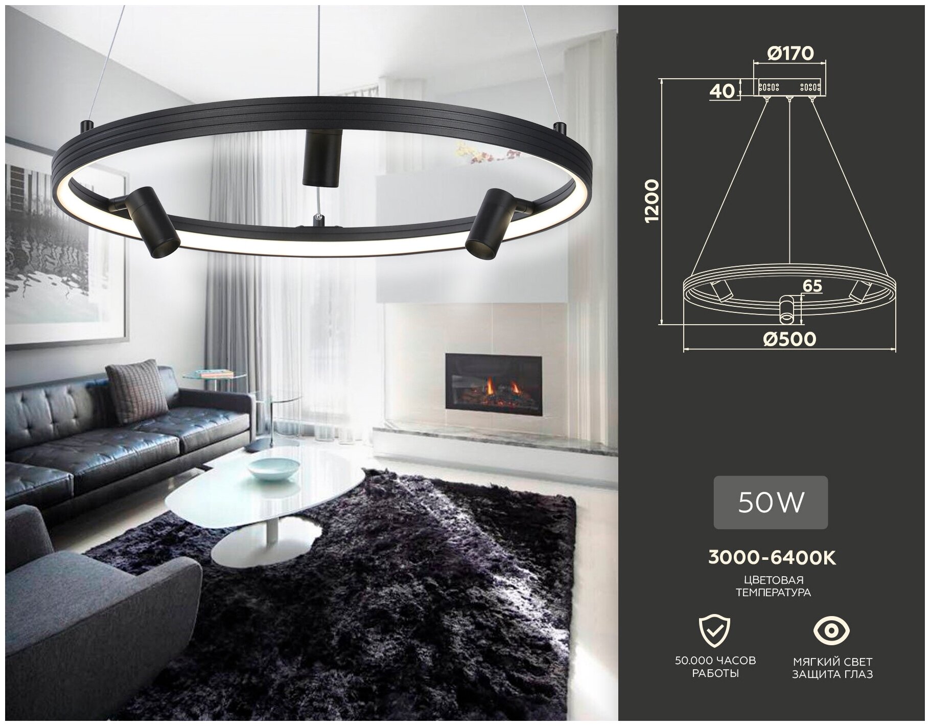 Подвесной светодиодный светильник с пультом и поворотным спотом, коллекция COMFORT. Модель представлена в современном стиле техно. Светильник выполнен из металла в черном цвете. Эта модель оснащена встроенными светодиодами, благодаря чему вы забудете о замене дополнительных ламп. Так же с помощью инфракрасного пульта вы сможете регулировать цветовую температуру и яркость освещения. Данная модель подходит для натяжных потолков и будет прекрасным дополнением в любом помещении.
