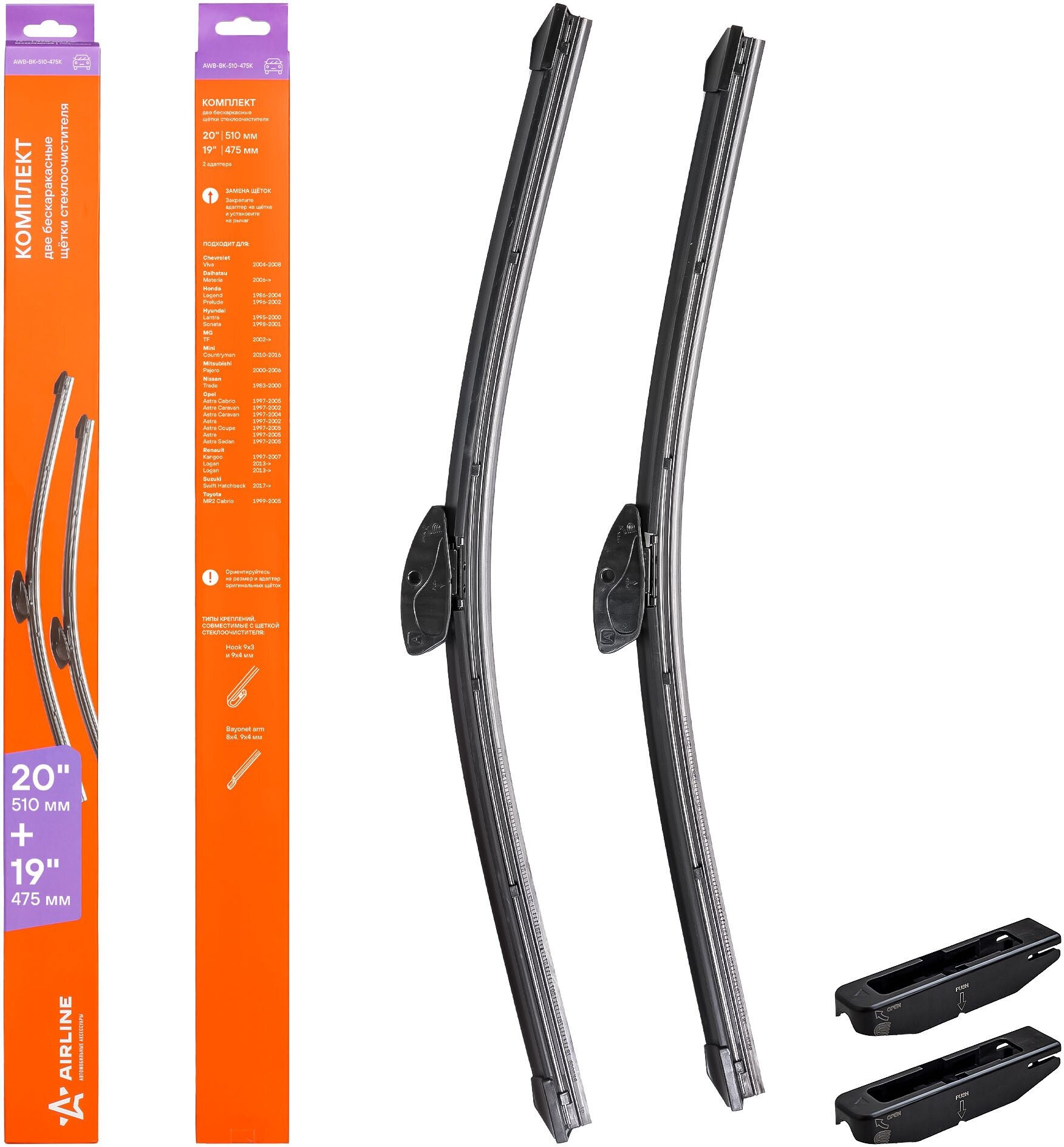 Щетки стеклоочистителя 510/475мм (20"/19") бескаркасныеAstraGSwift VSonata 98/012 шт. 2 типа адптр AIRLINE AWB-BK-510-475K (размер: 510/475 мм)