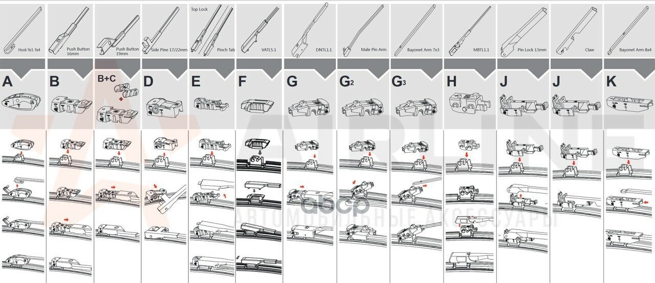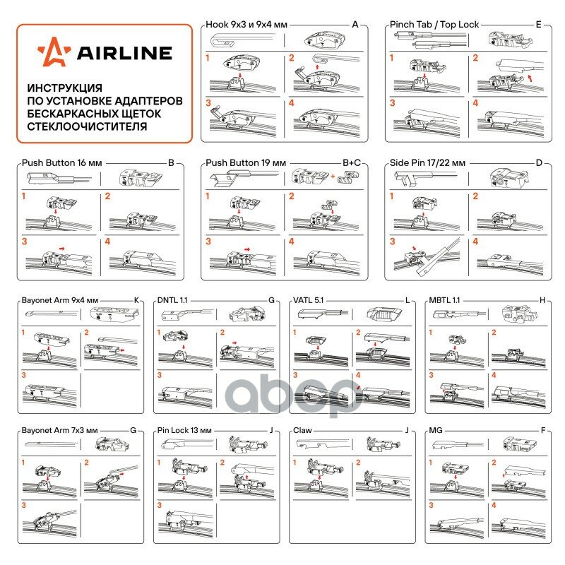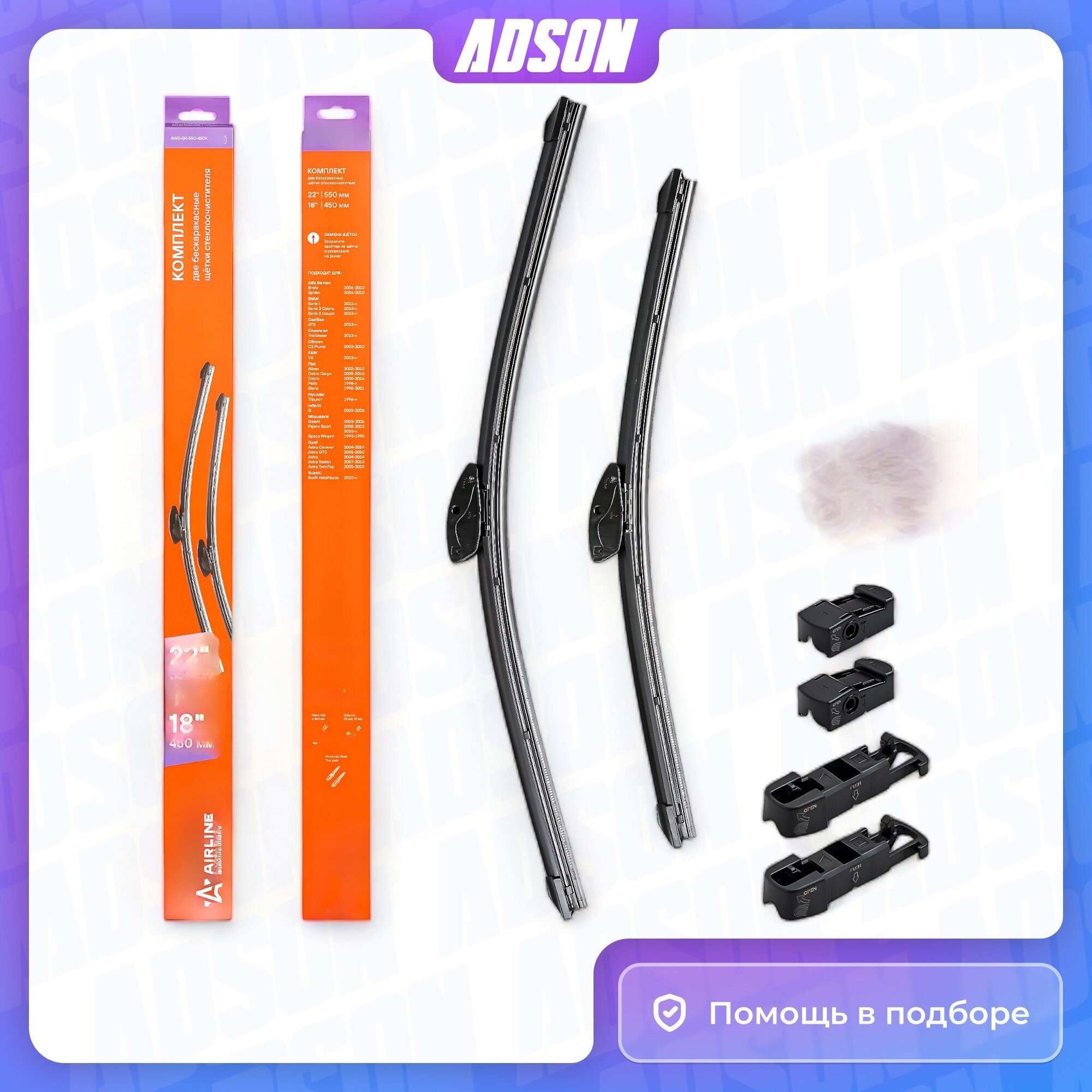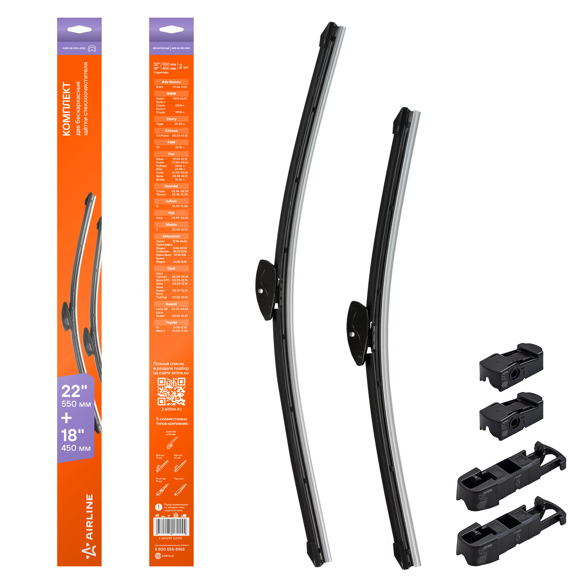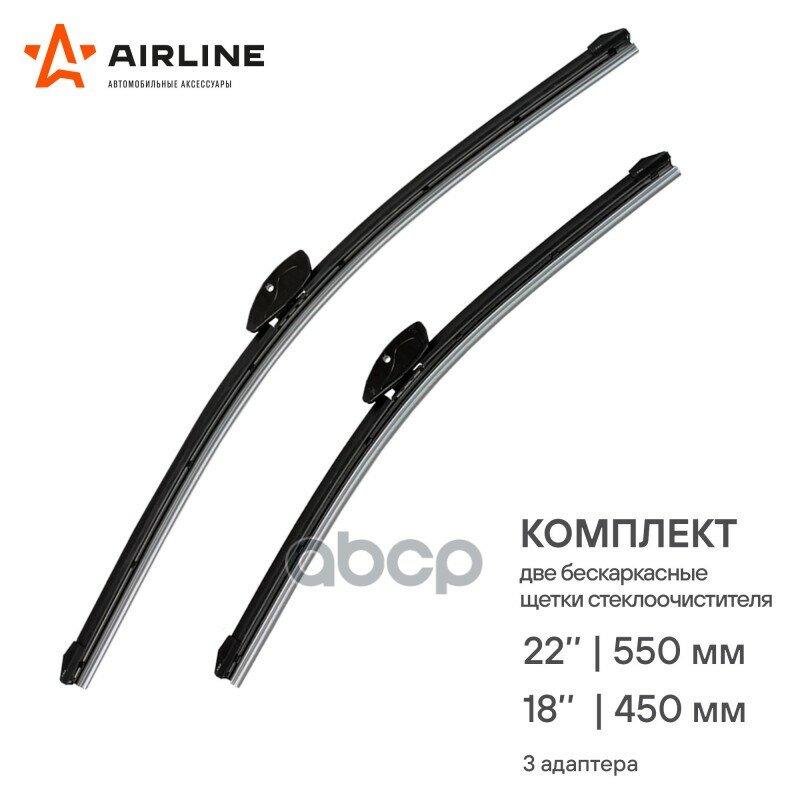 Щетки стеклоочистителя 550/450мм (22"/18") бескаркасныеBMW1 11-Pajero Sport 08/15-Astra 04/142 шт. 3 типа адптр AIRLINE AWB-BK-550-450K (размер: 550/450 мм)