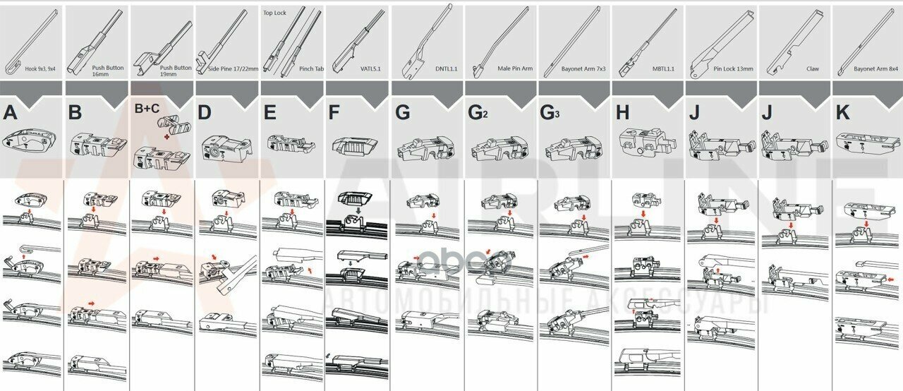 Щетки стеклоочистителя 650/650мм (26"/26") бескаркасныеTouareg 02/0606/10Q7 06/15Range Rover 02/13E-class 02/092 шт. 6 типов адптр AIRLINE AWB-BK-650-650K (размер: 650/650 мм)