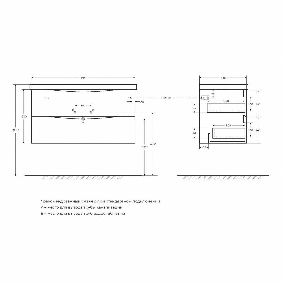 - Габариты корпуса тумбы (ШхВхГ): 964х500х438 мм.