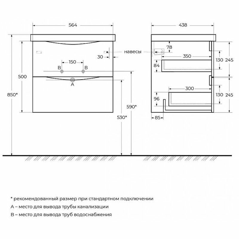 - Габариты корпуса тумбы (ШхВхГ): 564х500х438 мм.