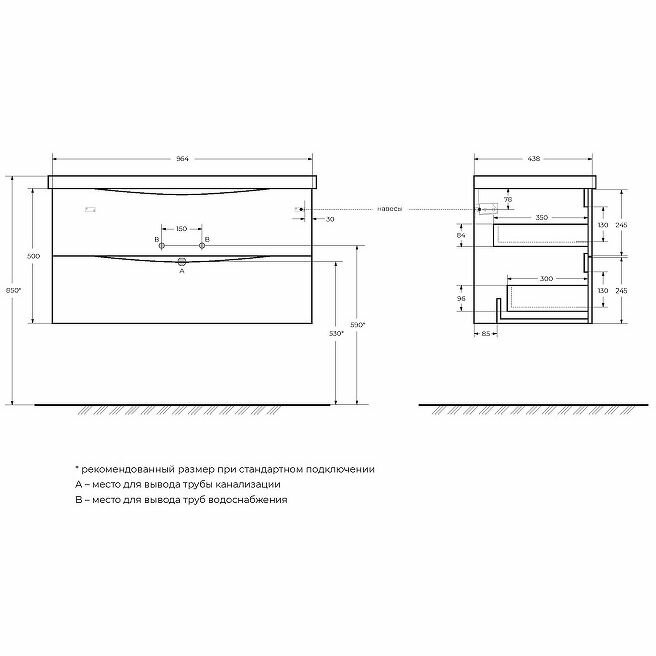 - Габариты корпуса тумбы (ШхВхГ): 964х500х438 мм.