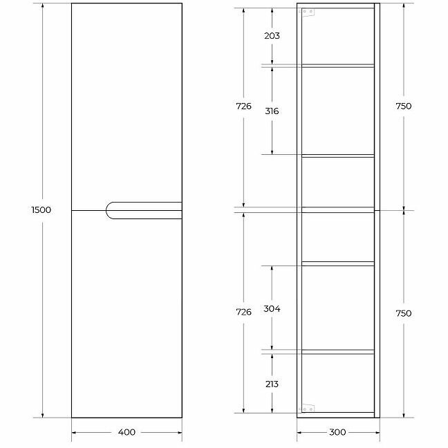 Пенал для ванной Cezares 40 DUET-1500-2A-SC-BL