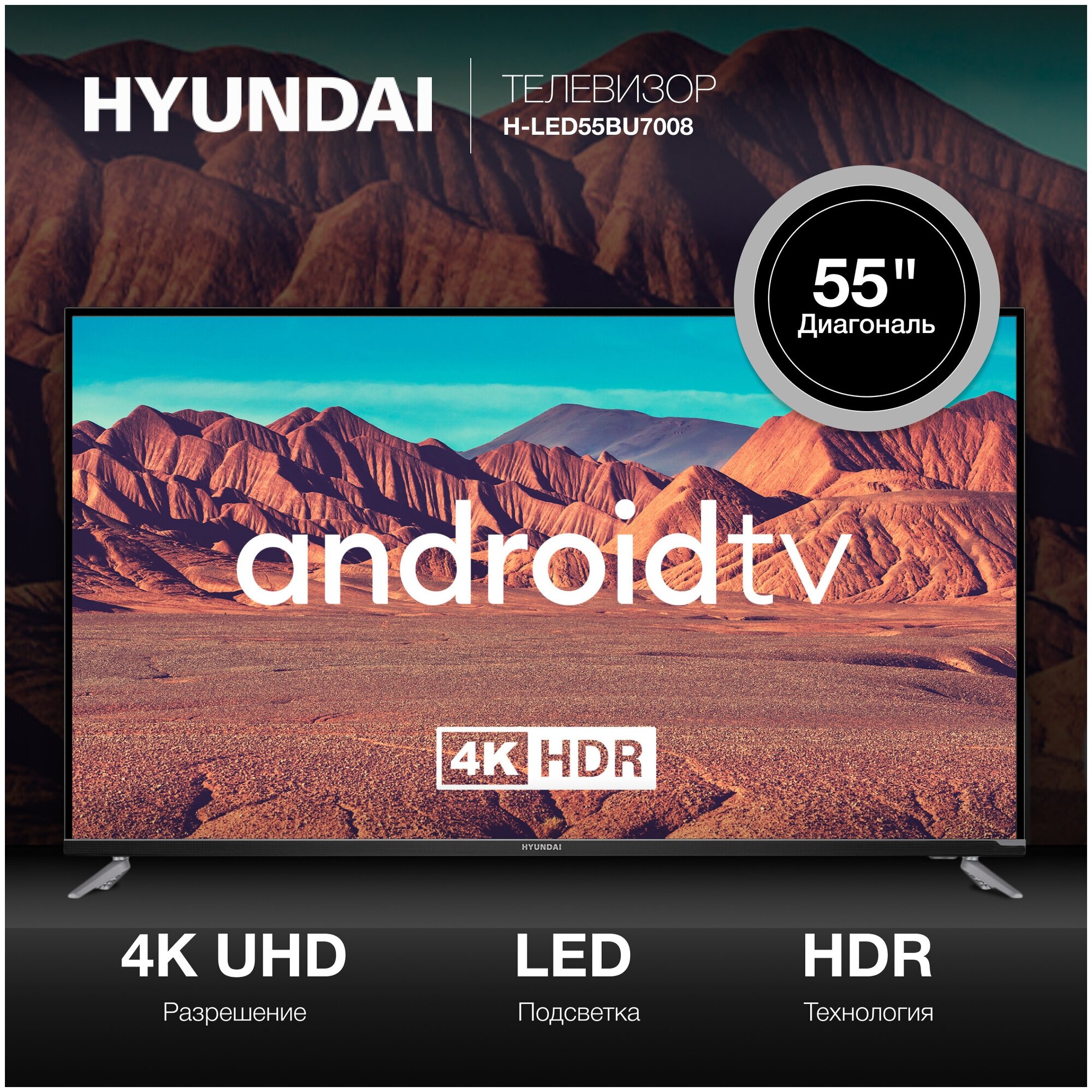 Телевизор Hyundai Android TV H-LED55BU7008 55" LED 4K Ultra HD черный