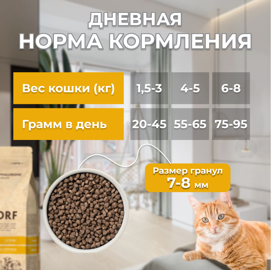 Обычно покупаю Grandorf с кроликом, взяла этот на пробу, тоже очень понравился. Классный состав, кошка ест с удовольствием, стул после норм - а у нее это не с каждым кормом так. Очень нравится, что корм не воняет, нормальный запах еды, а не химии. Буду покупать еще.