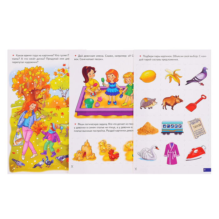 Предлагаемые упражнения способствуют многократному произнесению этих слов для более прочного их запоминания. Вопросы сформулированы таким образом, чтобы малыш отвечал одним словом в именительном падеже. Например: "Кто едет в вагоне?" - "Петух"; "Что надела бабушка?" - "Халат". Задания на развитие внимания, памяти, восприятия сделают занятия по карточкам увлекательными и полезными. Выполняя даже неречевые задания, просите ребенка называть картинки. Например, при решении судоку просите ребенка называть картинки, которые он выкладывает в клеточки. В данном наборе вы найдете задания на понимание значения предлогов, на развитие логического мышления. Задания на проговаривание слова без визуальной опоры (задавая ребенку вопросы, переверните карточку) способствует развитию самостоятельной речи. Разрезав картинки из Приложения на с. 16-21, можно играть в "Чего не стало?", "Что изменилось?", "Парные картинки". Картинки можно прикреплять на доску, прятать в крупу или песок, грузить в машину, прикреплять на прищепки и т.д. Просите ребенка проговаривать слово, с которым совершается действие.