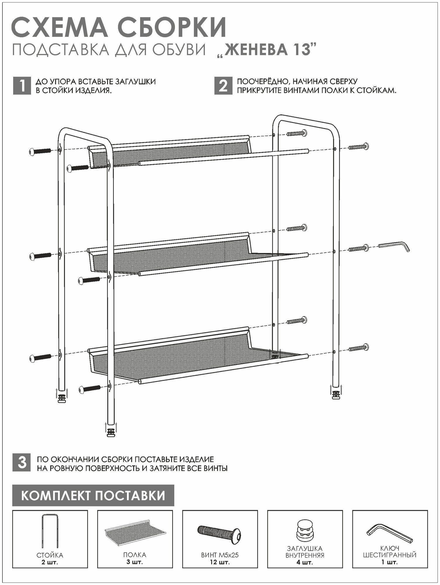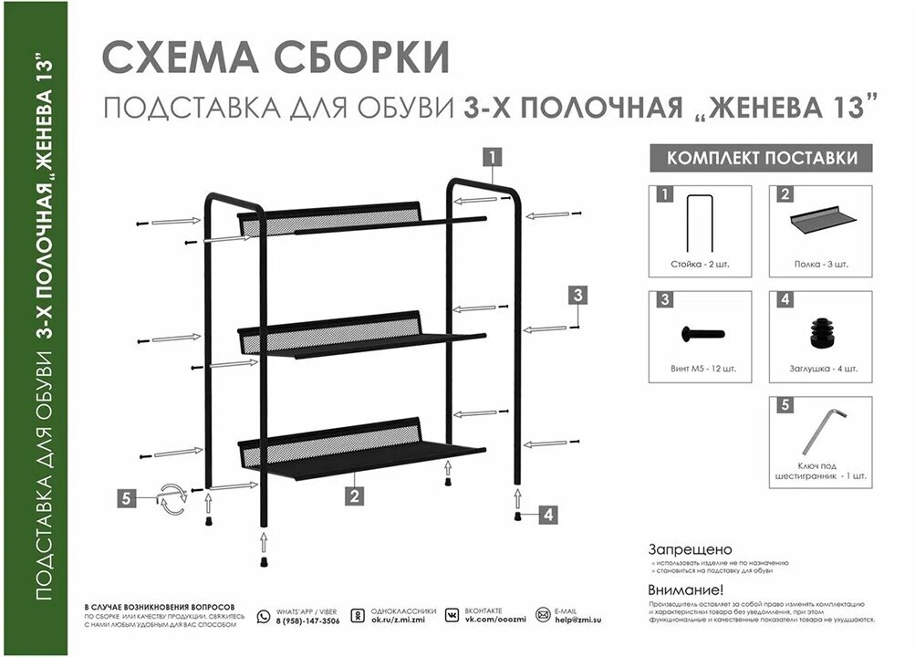 Стильная обувница " 13" от российского производителя "ЗМИ" создана для компактного хранения обуви в доме или офисе. Предлагаемые цветовые решения позволят встроить этажерку для обуви в любой интерьер. Долговечная, благодаря каркасу и полкам из стали. Три полки вместят до 6 пар обуви, а продуманные расстояния между ними позволят разместить как летнюю, так и зимнюю обувь. Благодаря наклону полок ваши стены будут чистые. Каждая полка выдерживает нагрузку до 8 кг. Собирается легко, благодаря пошаговой инструкции. Все инструменты для сборки уже в комплекте. Обувница в картонной цветной упаковке с удобной ручкой - легко донести от пункта выдачи до дома. Идеальный подарок для тех, кто ценит порядок в доме. Полка для обуви продаётся напрямую от производителя, что гарантирует качество и выгодную цену. Расширенная гарантия от производителя составляет 3 года.