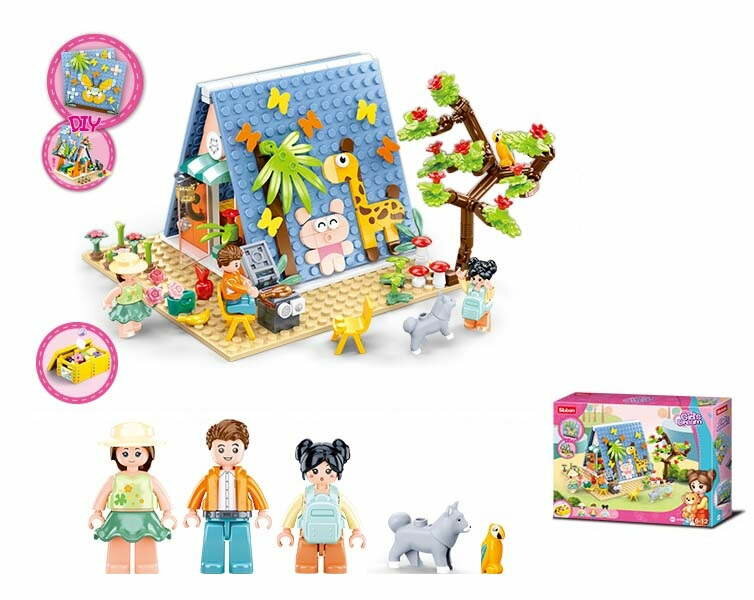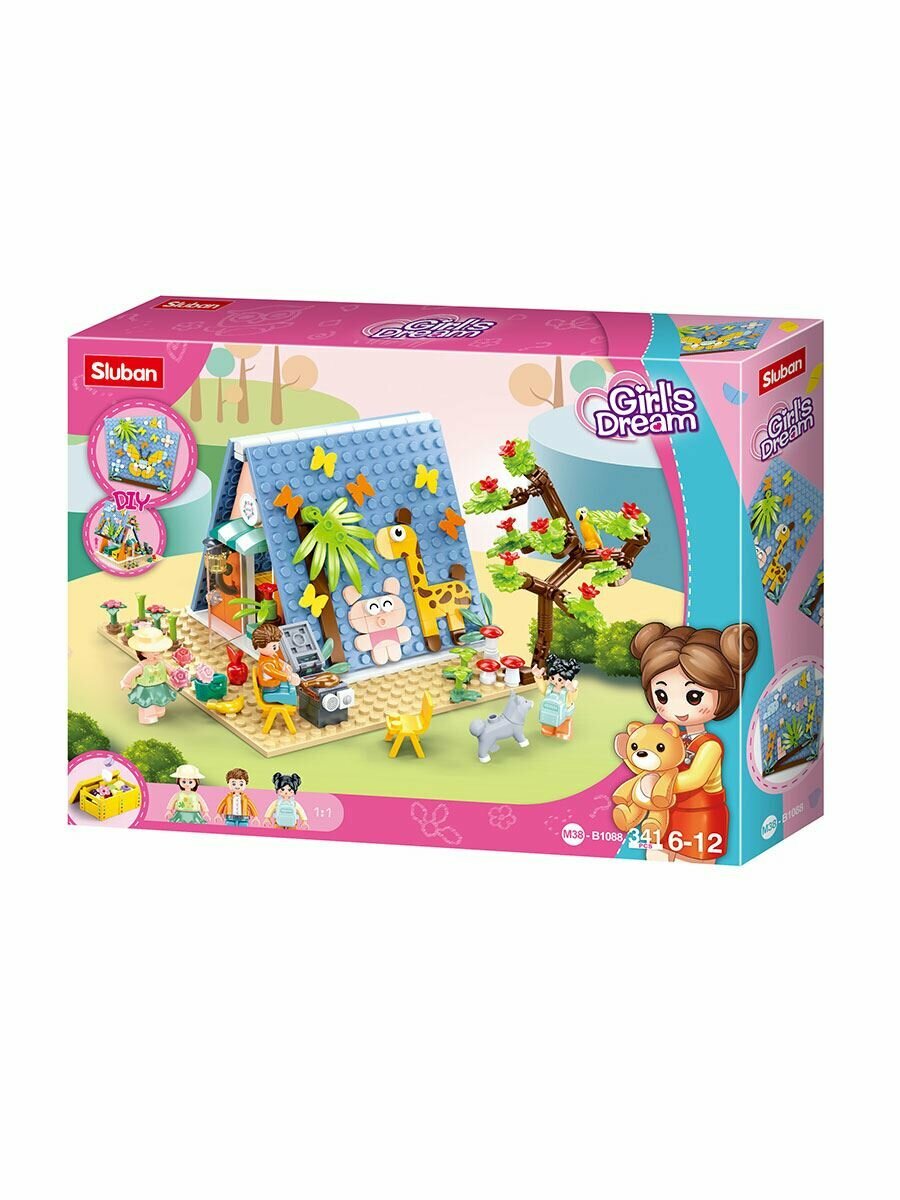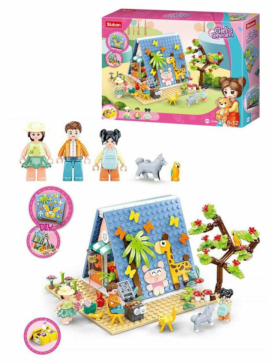 Конструктор SLUBAN Розовая мечта.Лагерь 341 деталь в коробке развивает творческое мышление, усидчивость и мелкую моторику. Выполнен из безопасных для здоровья ребенка материалов.
